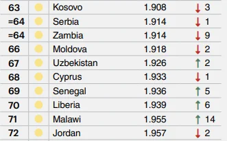 -Qirg‘iziston – 78-o‘rin;