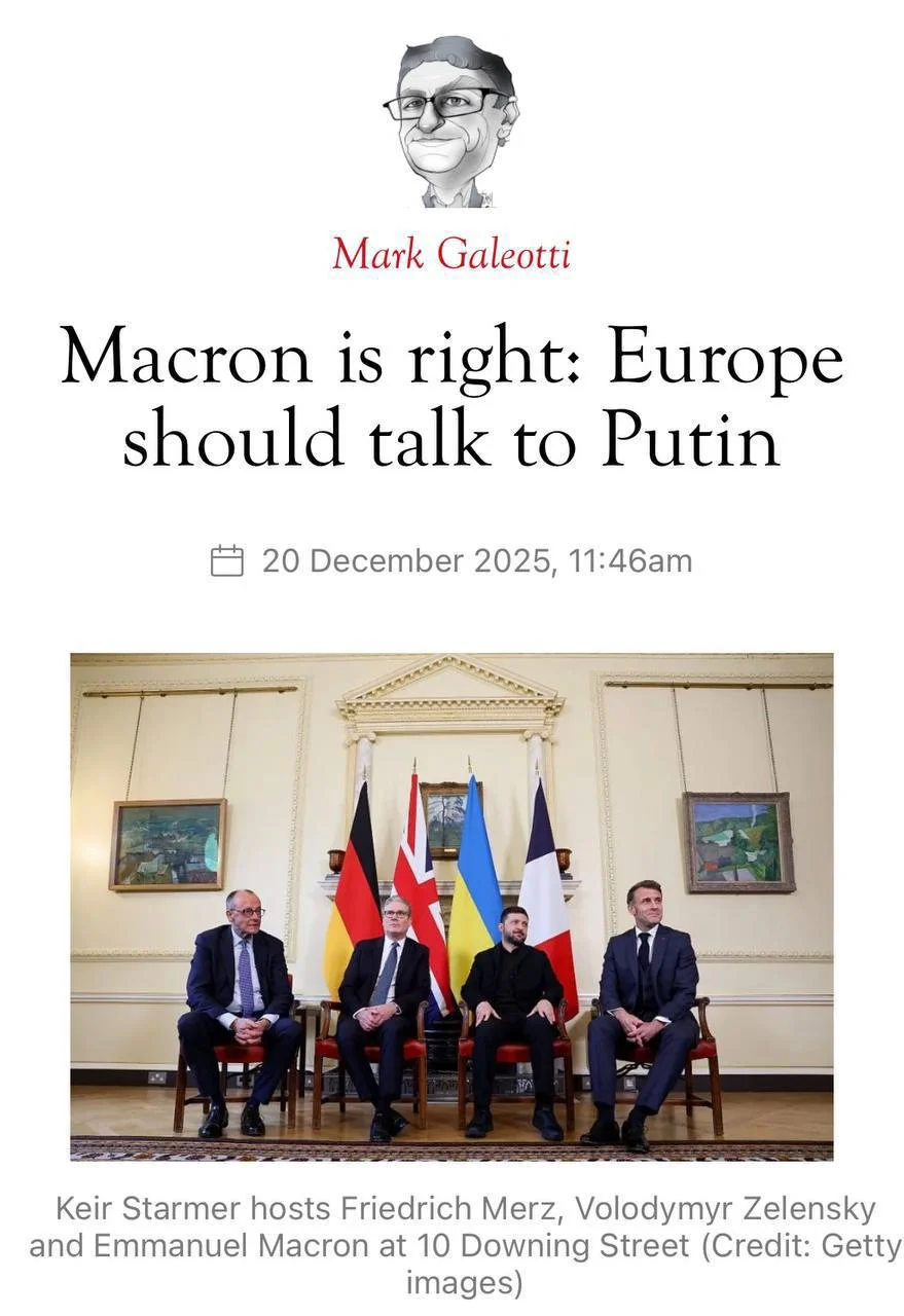 Muallifning ta’kidlashicha, Fransiya prezidenti Emmanuel Makronning Putin bilan to‘g‘ridan to‘g‘ri suhbatlashish zarurligi haqidagi pozitsiyasi mutlaqo mantiqqa to‘g‘ri keladi. Chunki Yevropa uchun Rossiyani butunlay inkor etish yoki uni «yo‘qdek» tutish amalda ish bermayapti.