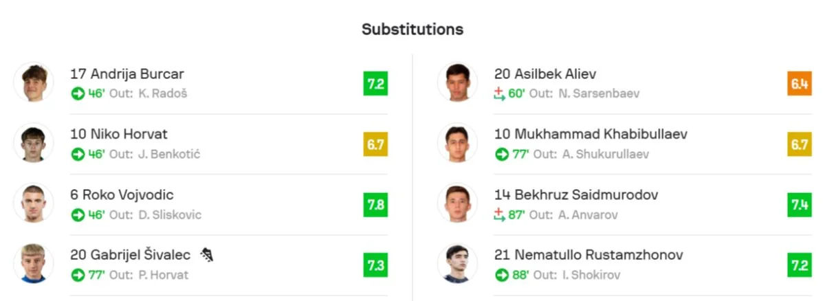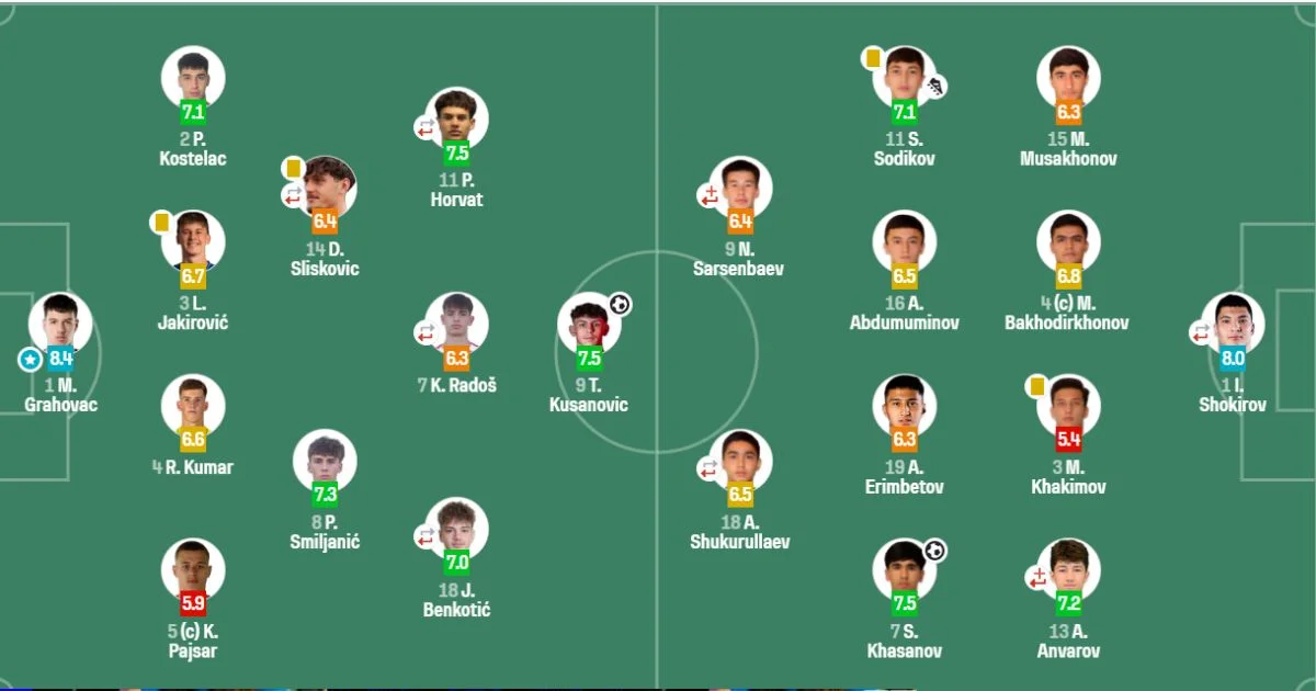 O‘zbekiston U-17 : Xorvatiyaga qarshi o‘yin uchun Sofascore baholari...