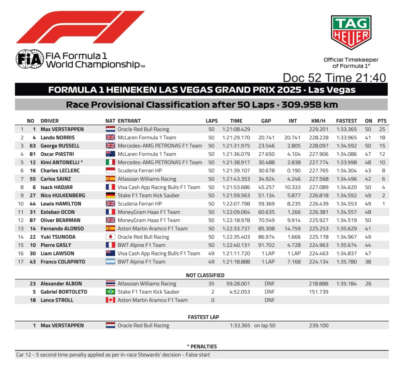 Niderlandiyalik mahoratli pilot uchun bu – faoliyatidagi 69-g‘alaba. Ushbu natija uni chempionlik borasida yana bir qadam oldinga olib chiqdi, intriga esa yanada qiziy boshladi.