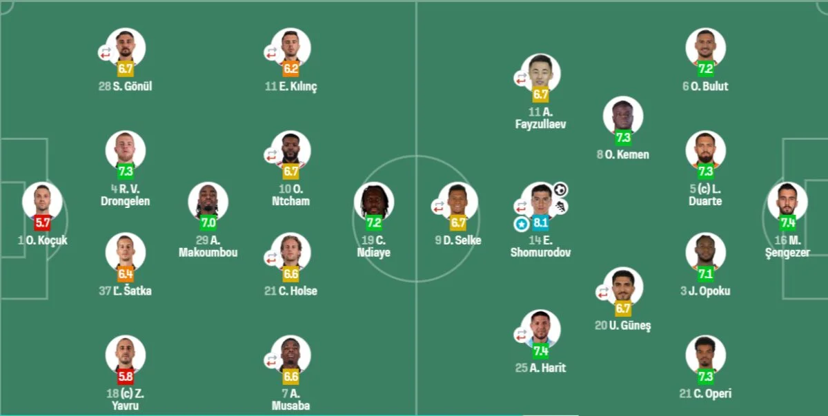 Uchrashuvdan so‘ng Sofascore statistik portali Eldor Shomurodovning o‘yinini 8,1 ball bilan baholadi. Bu bahsdagi eng yuqori ko‘rsatkichlardan biri bo‘ldi. Abbosbek Fayzullayev esa 6,7 ballga loyiq ko‘rildi. Quyidagi rasmda keltirilgan joylashuv va individual baholar ham Shomurodovning maydondagi ustunligini yaqqol ko‘rsatib turibdi.