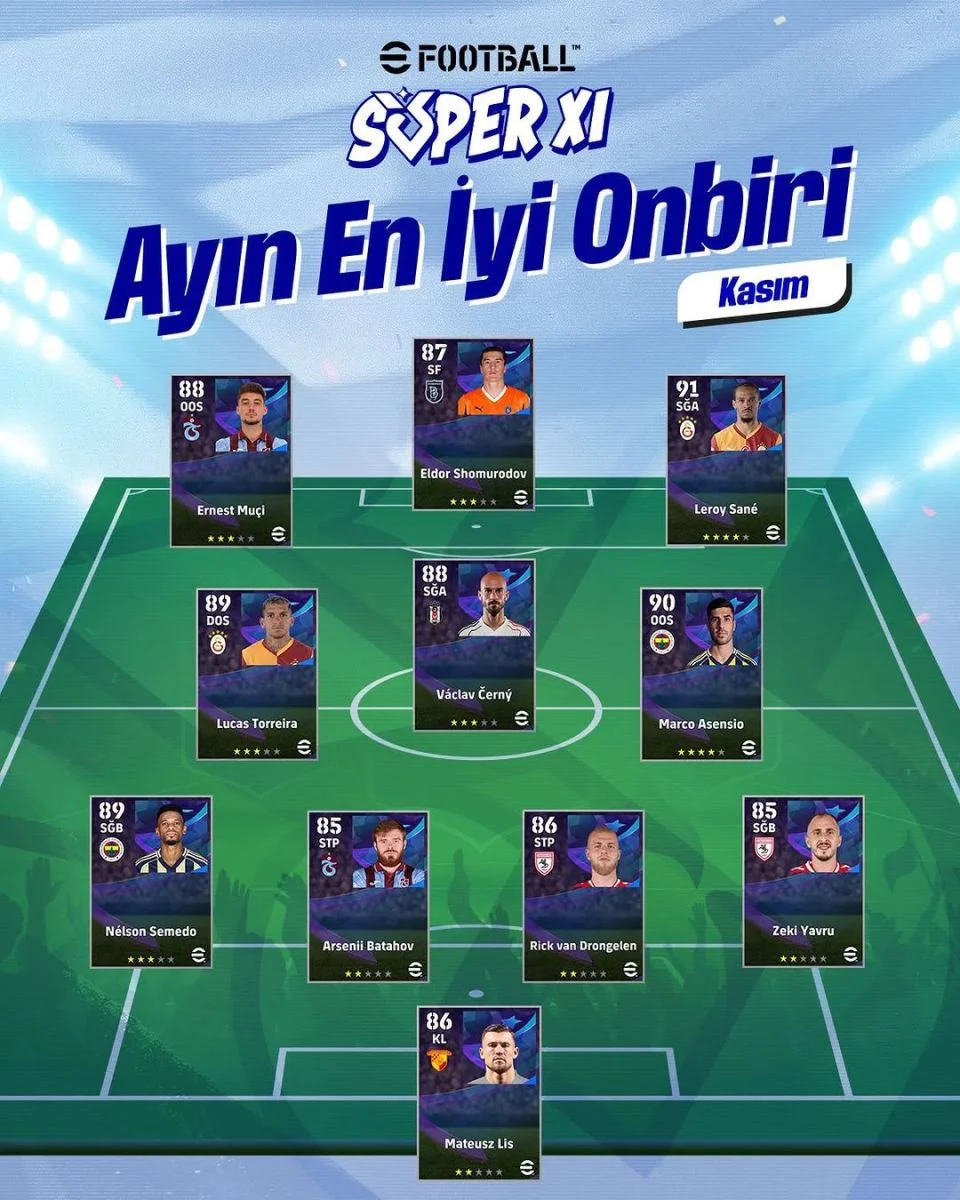eFootball Super XI talqiniga ko‘ra, noyabr oyi doirasida tuzilgan 16-tur ramziy jamoasi quyidagi futbolchilardan iborat bo‘ldi: